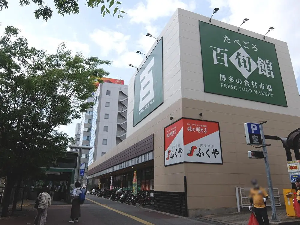 「博多千年門」や「承天寺」など博多の歴史を感じる場所とオフィスビルが立ち並ぶ、博多駅前1丁目。