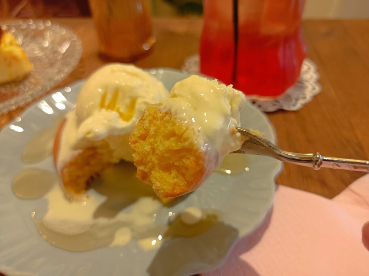 お醤油の香ばしさと甘じょっぱさにバニラアイスが加わると、あれ?ドーナツにみたらしをかけたような味わいに。しっとりとしたドーナツとなめらかなアイスの食感も◎。