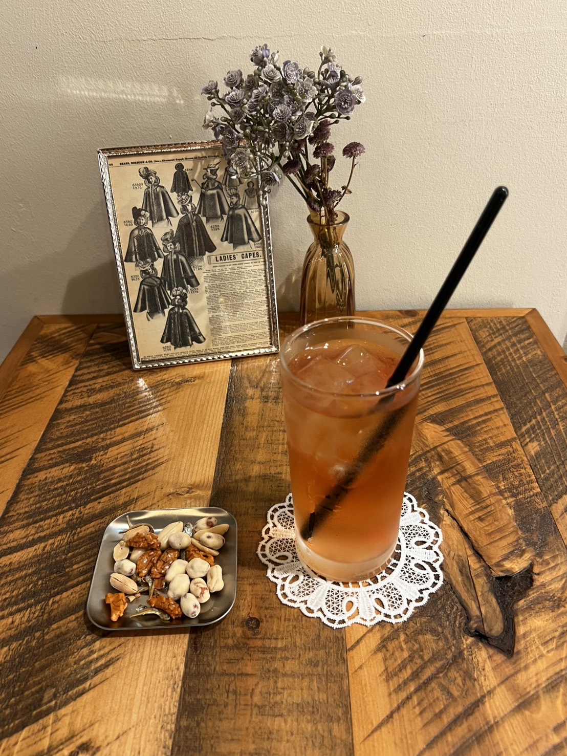 こちらのオーナー様は、海外のアンティークが大好きだそうで、お店の家具や内装は海外から直輸入したアンティーク家具なんだそうです。