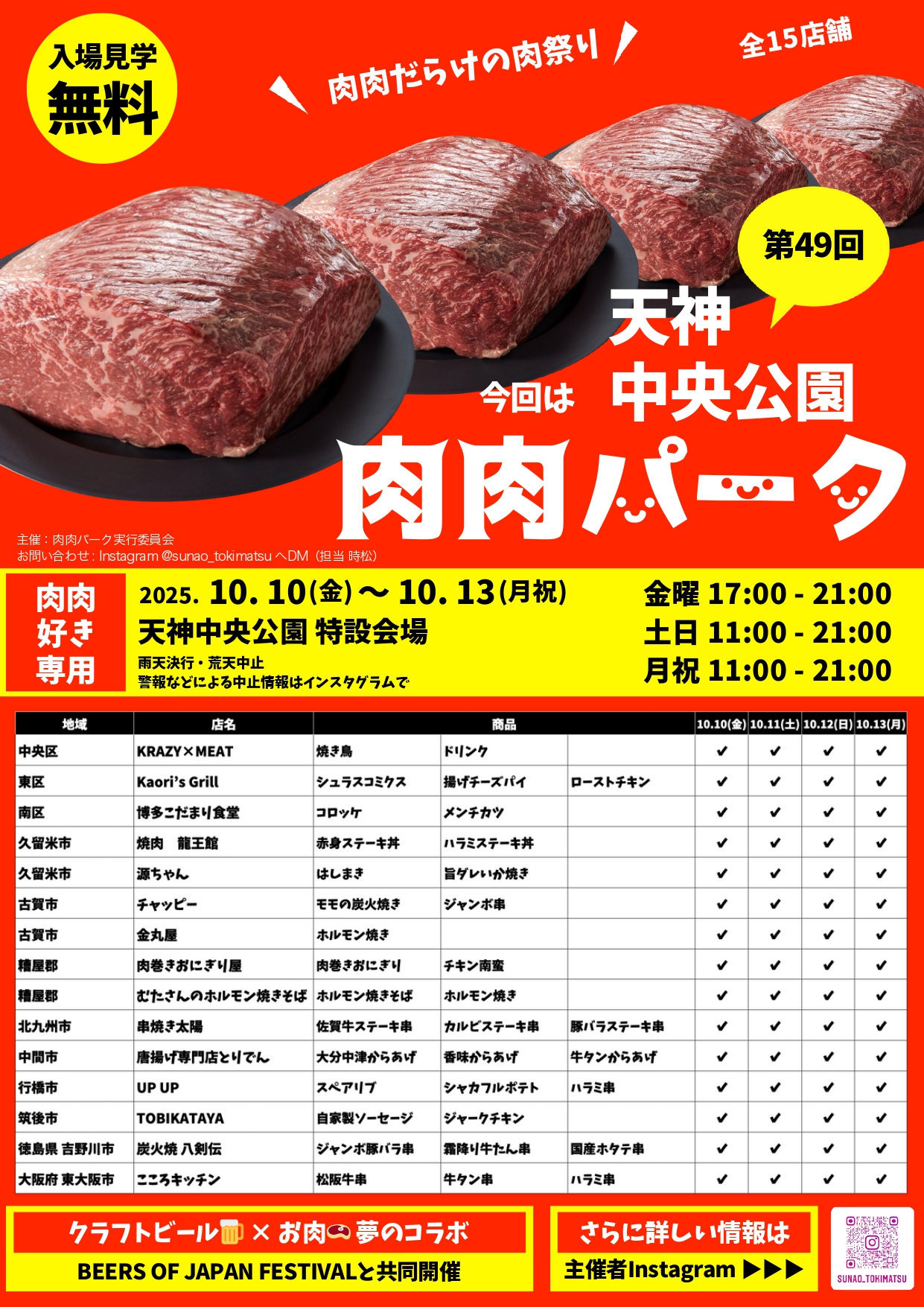 ④10月10日~13日開催!「第49回 肉肉パーク 天神中央公園」