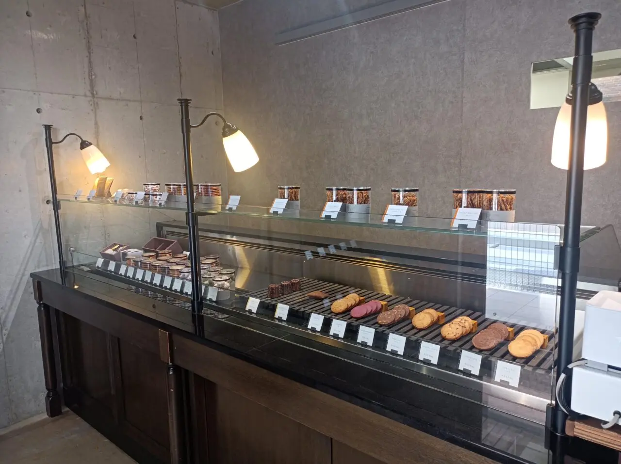 お店の中に入ると、オシャレでカッコイイ店内。ショーケースには、クッキーやフィナンシェ、スノーボールなど焼き菓子がきれいに並んでいて、お菓子を焼いた甘い香りが広がっています。