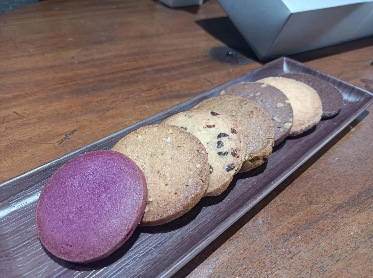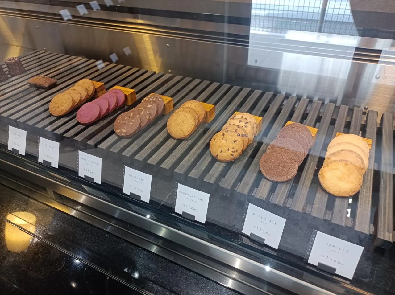 お店の看板商品である「クッキー」は、バニラやチョコ、チョコチップなどの定番クッキーに季節限定のクッキー2種類(芋、キャラメル)の7種類。