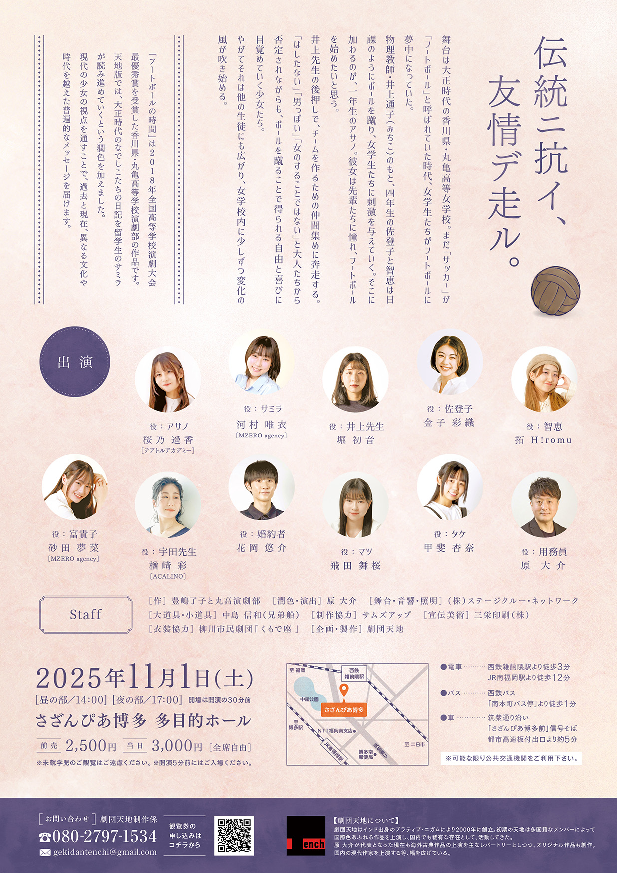【福岡市博多区】劇団天地創立25周年記念兼第27回公演「フートボールの時間」が博多南地域交流センターさざんぴあ博多で11月1日(土)公演!
