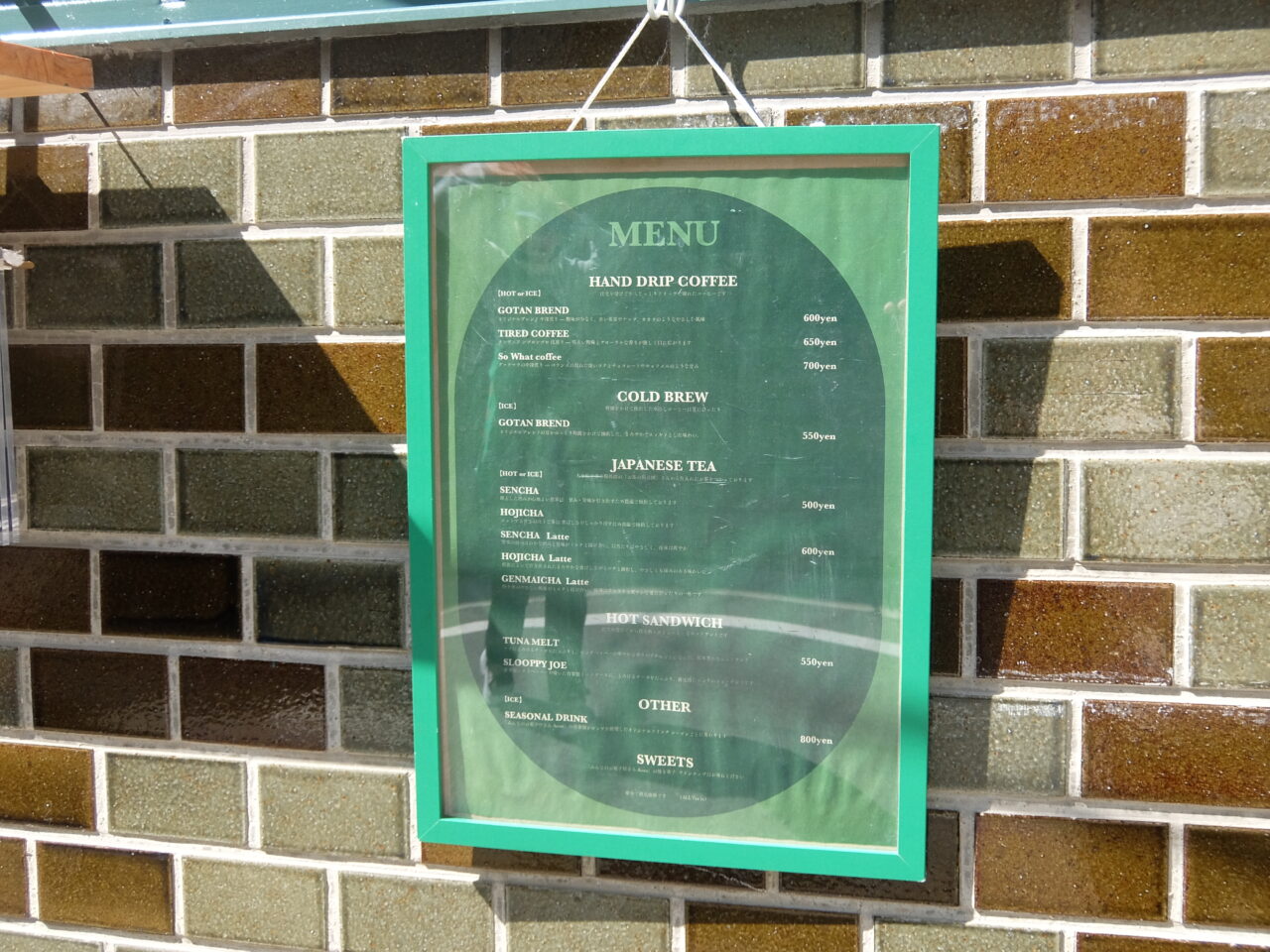 メニューは、スペシャルティコーヒー専門店「BASKING COFFEE」に依頼して作っていただいた「五反ブレンド」や、大分県中津市耶馬渓にある「お茶の川谷園」の茶葉や粉末を使用した日本茶やラテ、自家製シロップの季節限定ドリンク(現在は新生姜のシロップサイダー)、ホットサンド、焼き菓子などが販売されています。