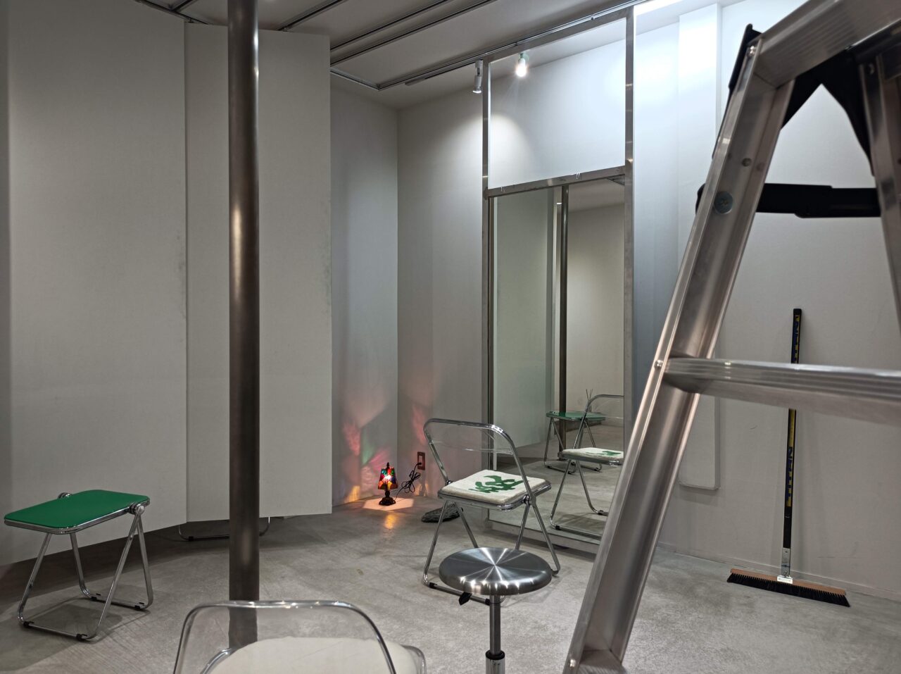 佐藤さんが20歳の時に考えたアイデアが形となった美容室は、無機質なコンクリートで構成された空間は独特な雰囲気。天井にレールが付いていて、パーテーションや鏡などを自由に移動させることができます。余計な内装材がなくシンプルですが、どこか遊び心を感じます。