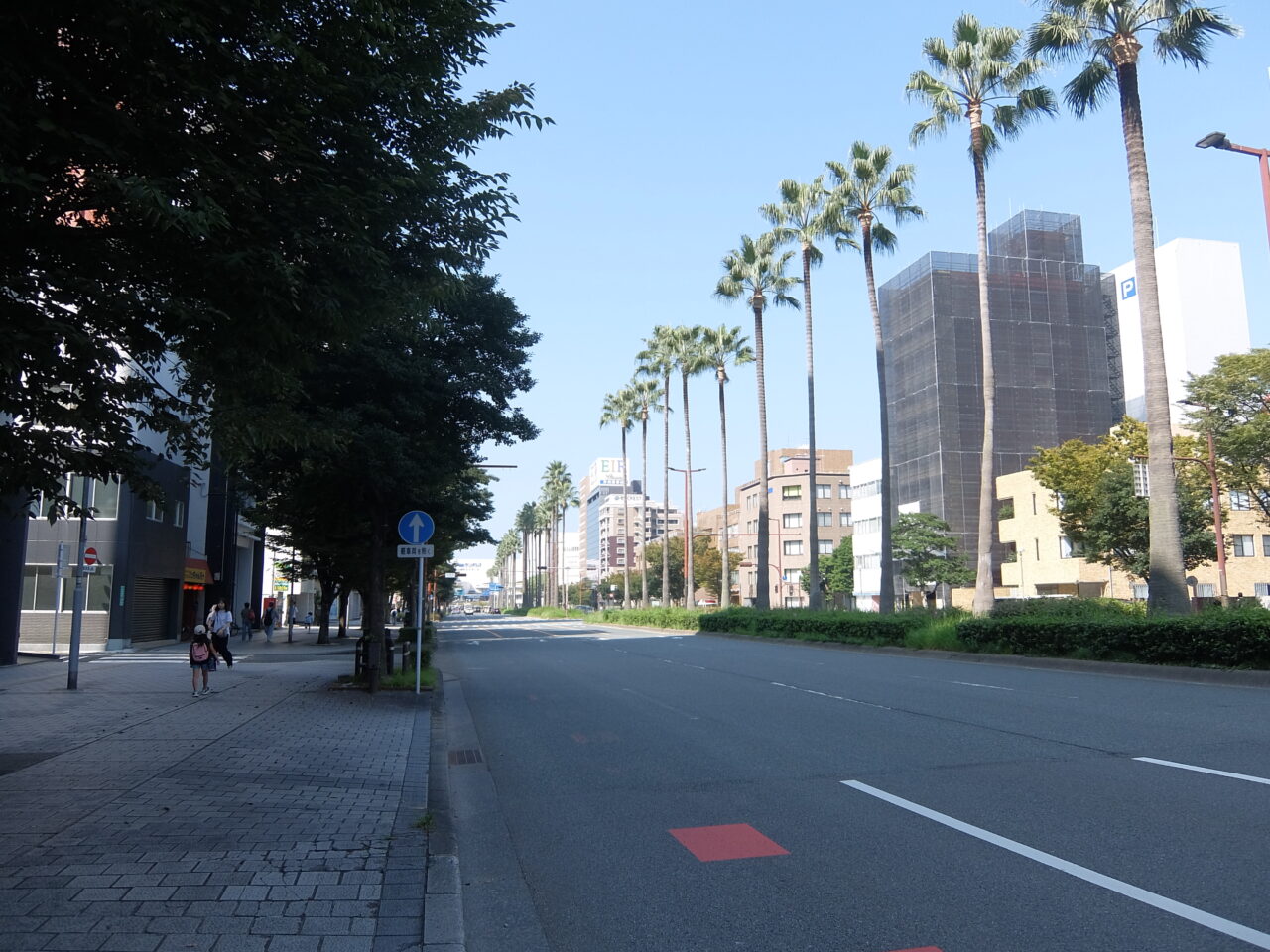 大博通り沿いはオフィスビルが立ち並びますが、一歩入ると歴史に触れることができる街並みにガラリと雰囲気が変わります。