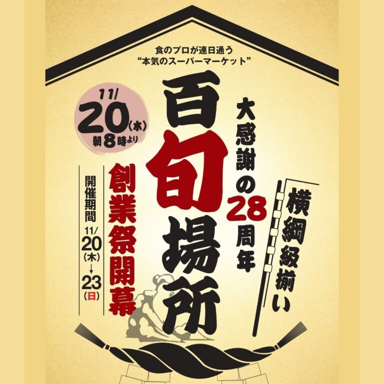 たべごろ百旬館 渡辺通本店では、2025年11月20日(木)〜 23日(日)まで、「創業祭~百旬場所~」が開催されます!