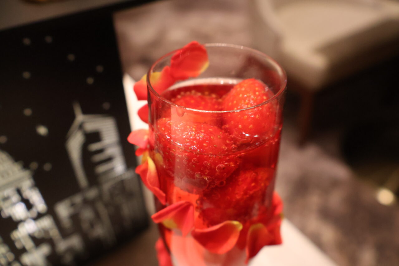 スペシャルドリンクの「ベリー・メリー・スパーク(税込1,300円)」は、 ベリーの甘酸っぱさとスパークリングの爽やかさが絶妙です!