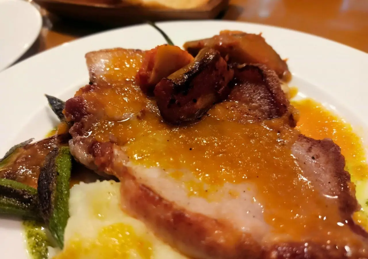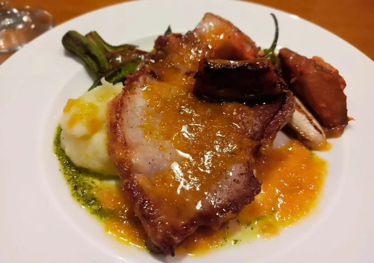 1品選ぶメイン料理は、本日のメイン「きなこ豚のソテー」を選びました。