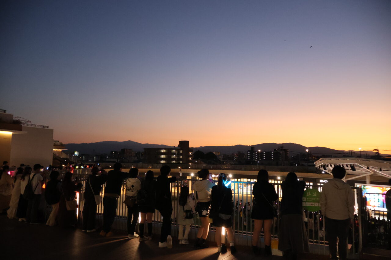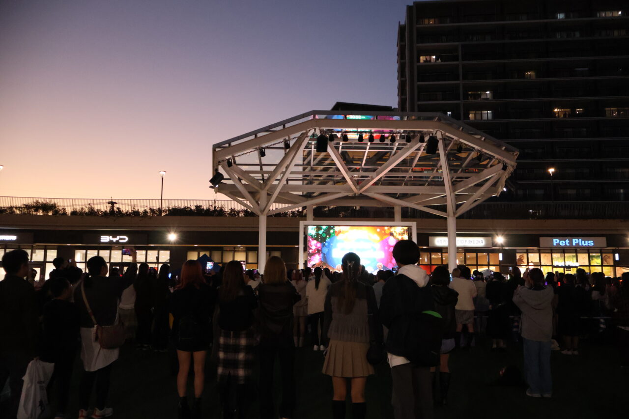 点灯式に参加するため、17時過ぎにモール棟1階オーバルパークを訪れると、点灯式のスペシャルゲスト「パンダドラゴン」のファンの方や、11月14日(金)から始まった、ららぽーと福岡のブラックフライデーの2日目とあって、小さな子どもを連れた家族連れの方など多くの方がいらっしゃいました。