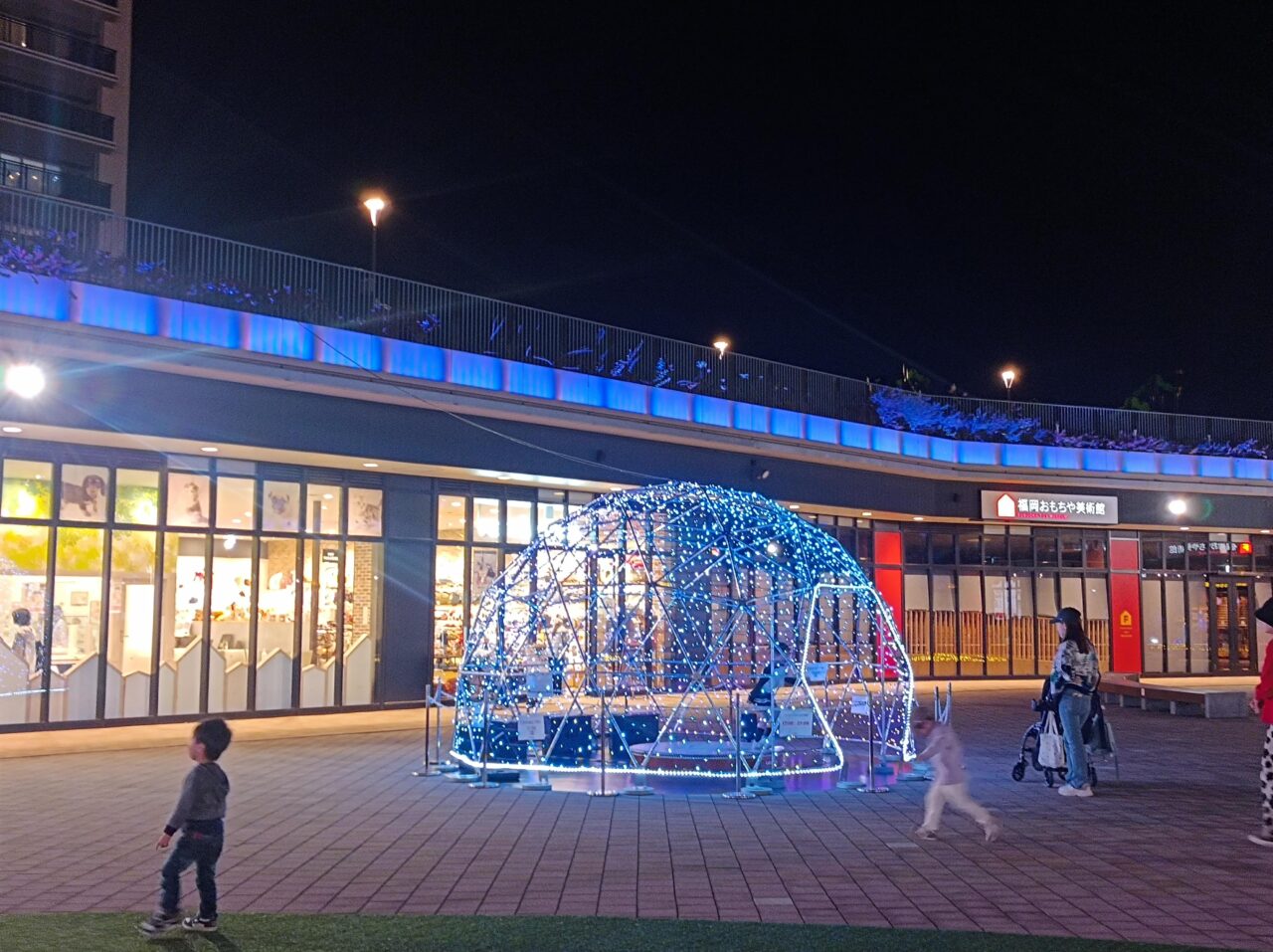 Pet Plus(ぺっとぷらす)ららぽーと福岡店の前には、ドーム型のデコレーション「ウィンタードーム」が登場しています!