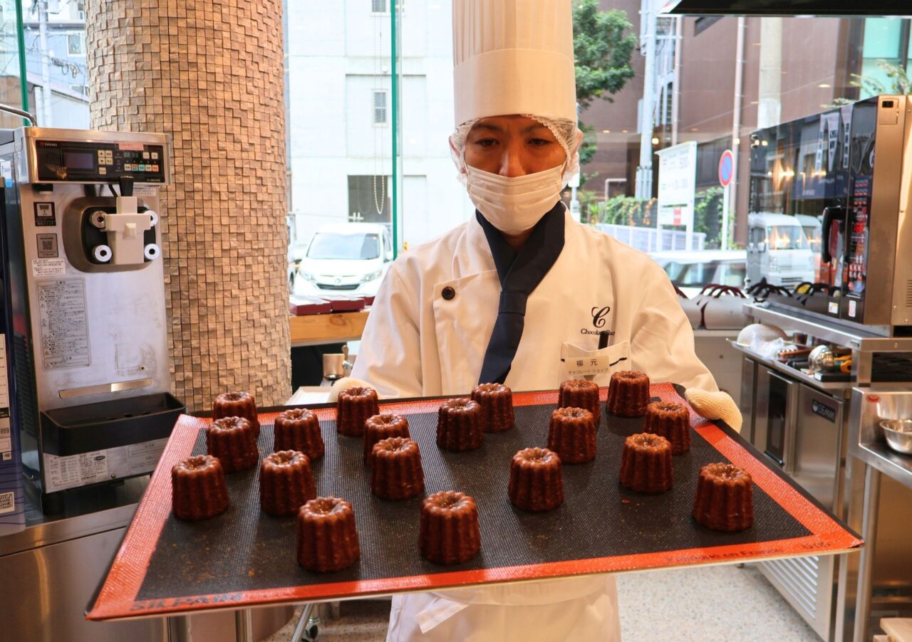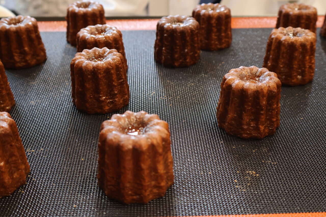 取材中、オーブンからカヌレが取り出される瞬間に遭遇!店内に一気に広がる焼きたての甘いバニラの香りは、筆者の想像を遥かに超えるものでした!この臨場感は、リニューアル後の大きな魅力の一つです!