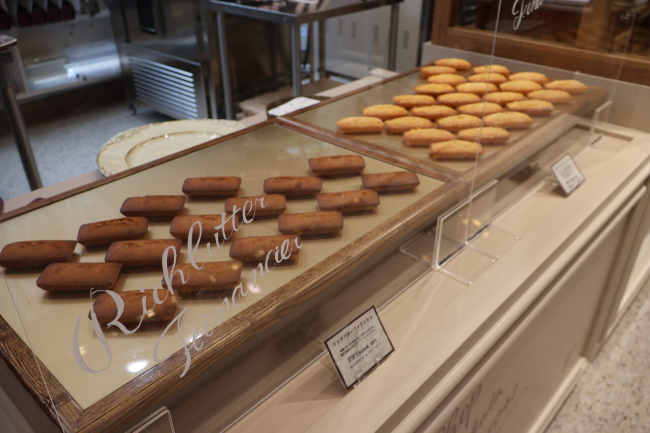フィナンシェ、カヌレ、クッキーに加え、ライブキッチンでは季節の美味しさを閉じ込めた2種類のタルト(「イチゴとリンゴのタルト」と「ピスタチオとロゼグレープフルーツタルト」)と、蜂蜜風味の洋風カステラも出来立てで提供されています。