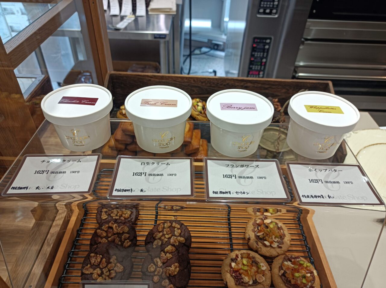 クリームは、「チョコクリーム」「白生クリーム」「フランボワーズ」「ホイップバター」の4種類。