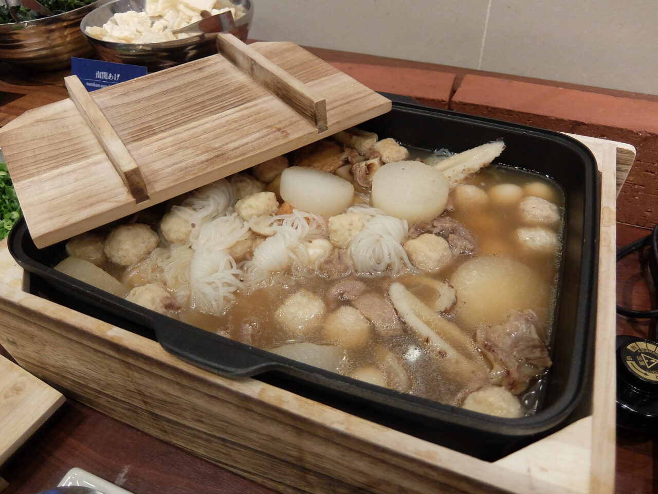 冬限定!華みどりを使用した水炊きスープで仕上げた「おでん」もありました。うずらの卵やだいこんの定番具材に加え、華みどりのつくねやソーセージといった変わり種も!具材は一口サイズにカットされているので、お子様も食べやすいのが嬉しいですね。