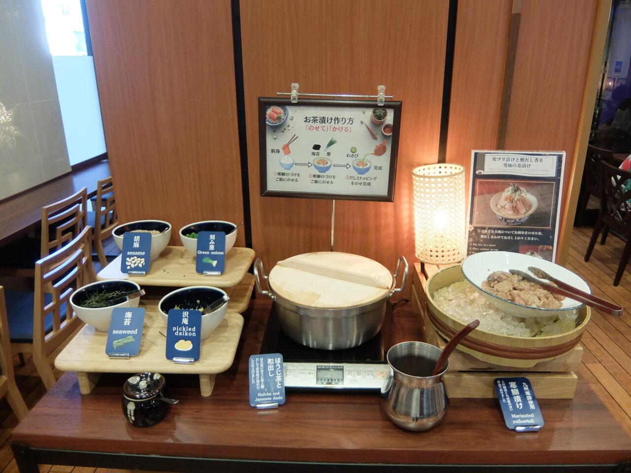 新鮮な寒ブリを特製の大吟醸胡麻ダレに漬け込み、香ばしいほうじ茶の出汁をかけていただく贅沢なお茶漬けです。
