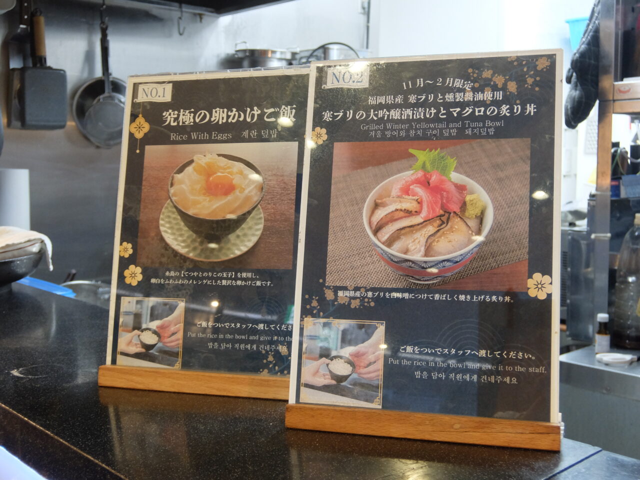 新鮮な刺身はそのまま楽しむも良し!贅沢に寒ブリ丼にするも良し!福岡県産の旬魚の刺身や漬け、「ふくや」の明太子などと一緒に堪能してくださいね!