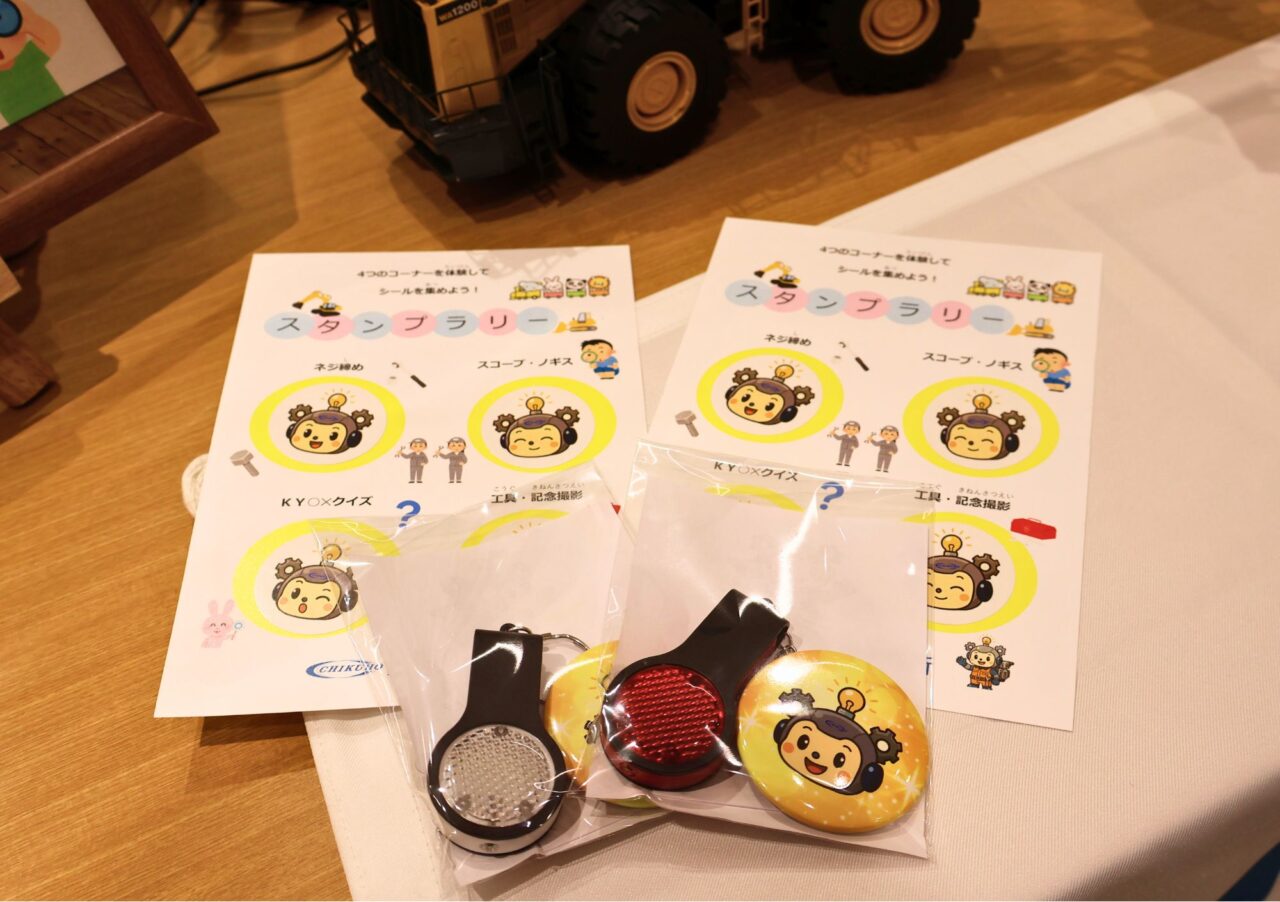 4つのコーナーを体験し、「ちくまるくんシール」をもらった子ども達。ちくまるくんのシールだけでもかわいいのですが、さらに、「ちくまるくんミラー」と「ライト付きホイッスル」もプレゼントされ大喜び!遊びながらもプロの仕事の難しさや重要性を学べる、キッザニアならではの充実した体験となりました。
