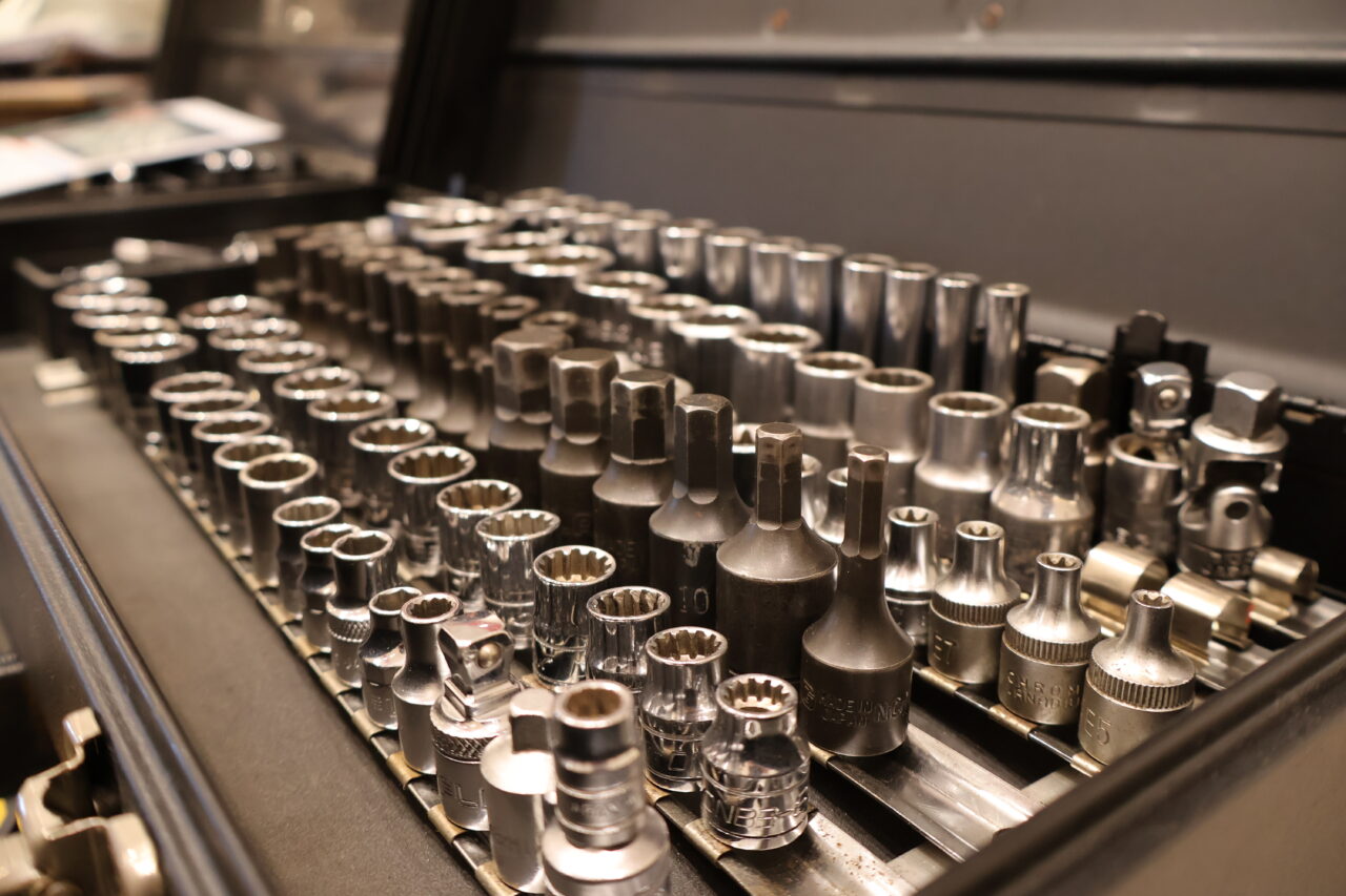子どもたちが作業に集中するブースの近くには、プロ仕様の工具が展示されていました。ものすごい数のソケットや、様々な用途に使われる見たことのない専門道具の数々に圧倒されます。