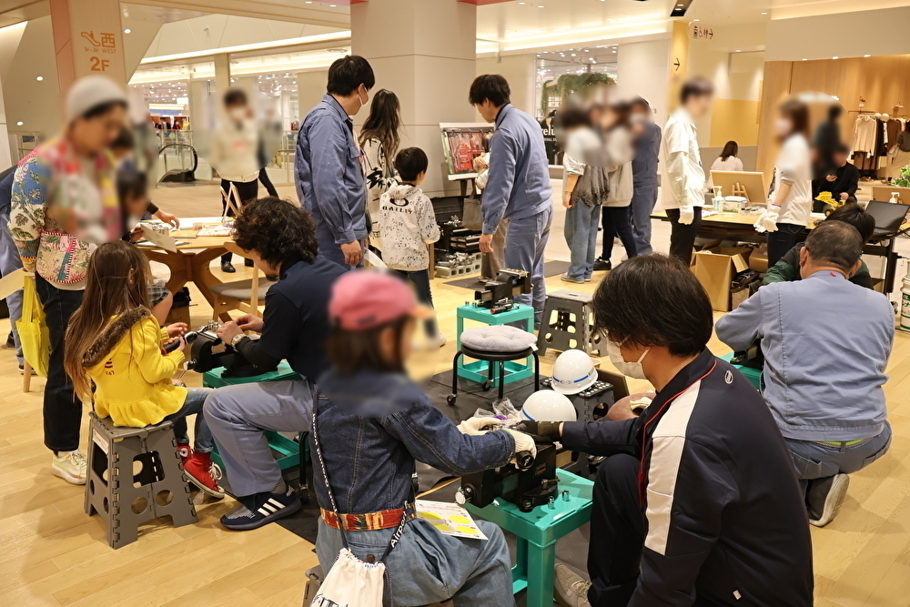 他に参加していた子どもさんの中には、上手くネジを締められず、思わず親御さんが代わりに挑戦する姿も見られました。この体験から、力だけでなく、正確な作業が求められるサービスエンジニアの仕事の一端を感じることができました。