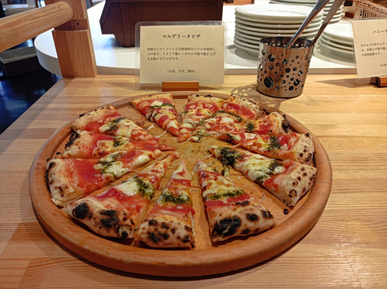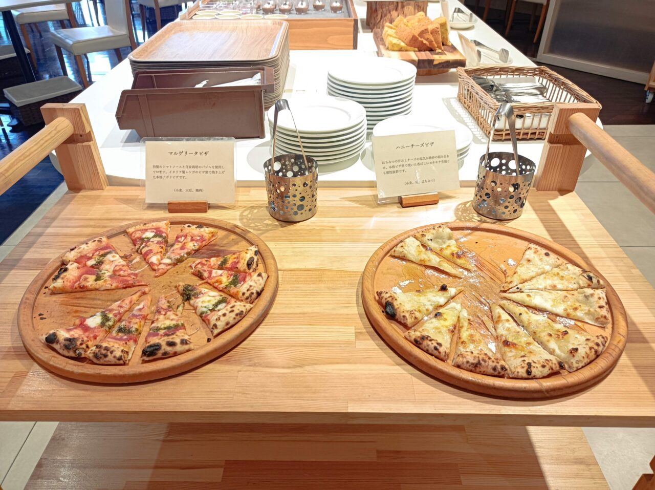 人気の窯焼きピザは、定番の「マルゲリータピザ」とスイーツ感覚で食べられる「ハニーチーズピザ」の2種類。