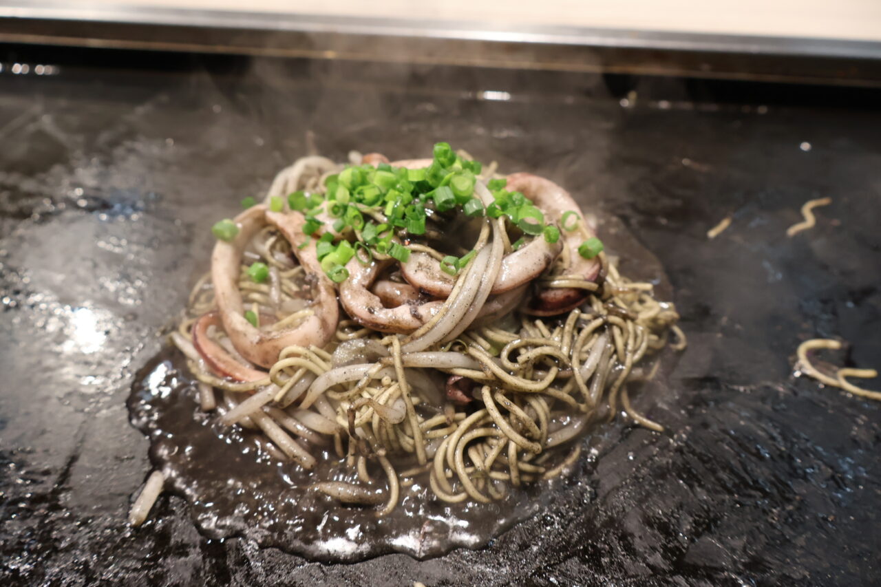 こちらではイカ墨を使用した特製焼ラーメン「イカ墨ブラック焼ラーメン」(979円(税込))。強烈な真っ黒な見た目とは裏腹に、パンチのある味わいが癖になりますよ。
