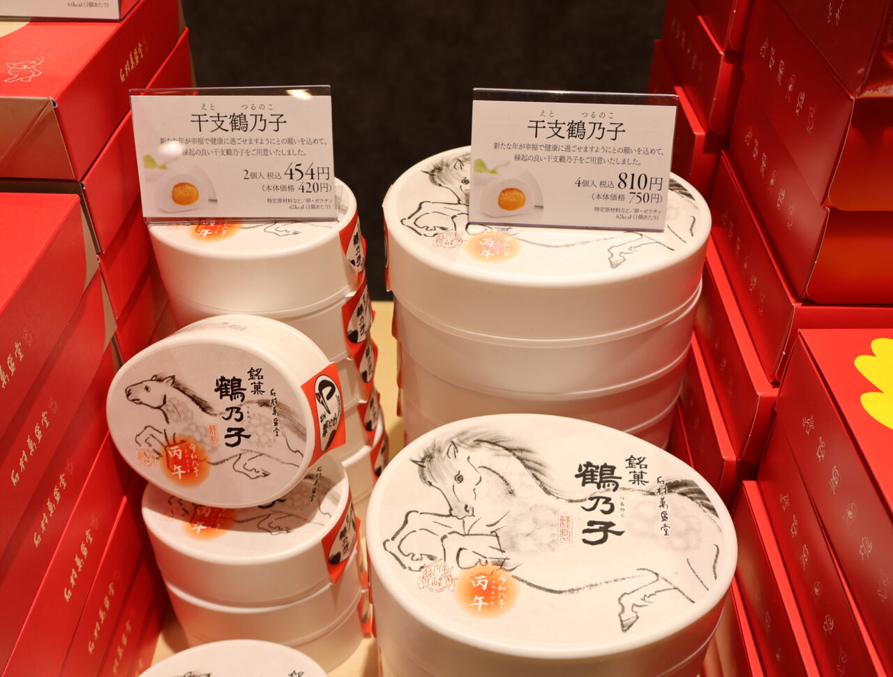 毎年人気の縁起の良い限定パッケージ「干支鶴乃子」が購入できます。
