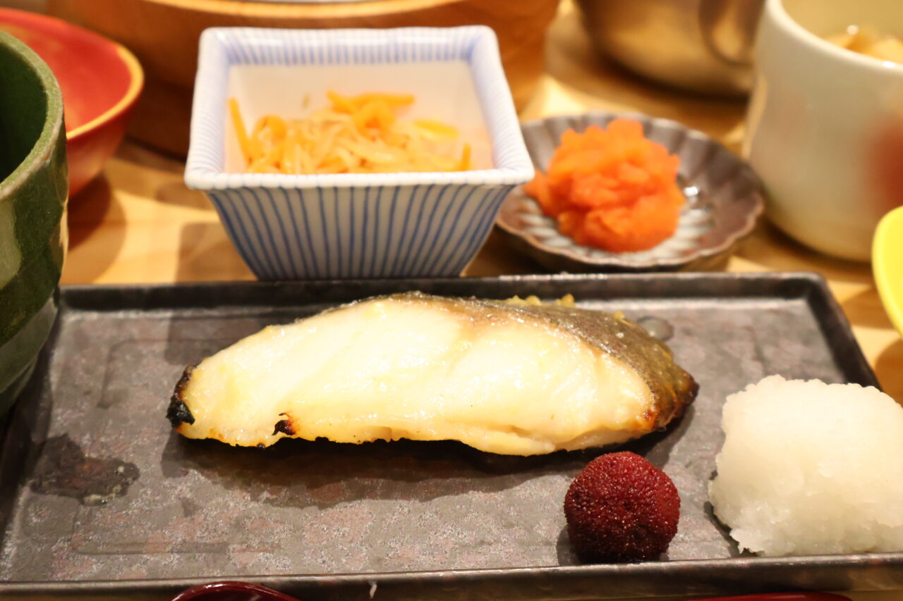 銀しゃりをより一層美味しくしてくれるのが、脂ののった「銀鱈の西京焼き」です。西京味噌の香ばしさと銀鱈の濃厚な旨味は、銀しゃりと相性抜群。噛むほどに旨味が増して、箸が止まらなくなります。