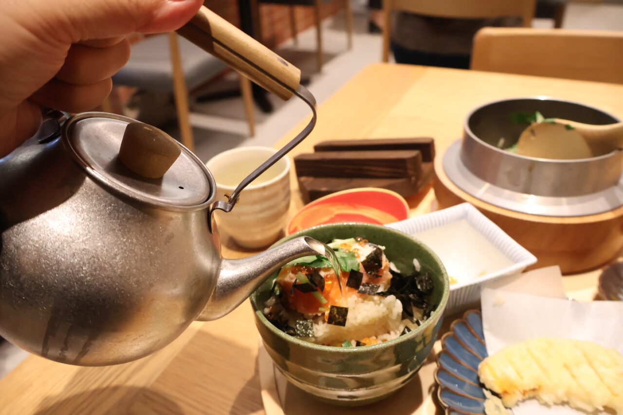 こちらも特製の熱々の出汁を注げば、香りと旨味が凝縮されたお茶漬けがいただけますよ。贅沢な味わいに病みつきになりそうですね。