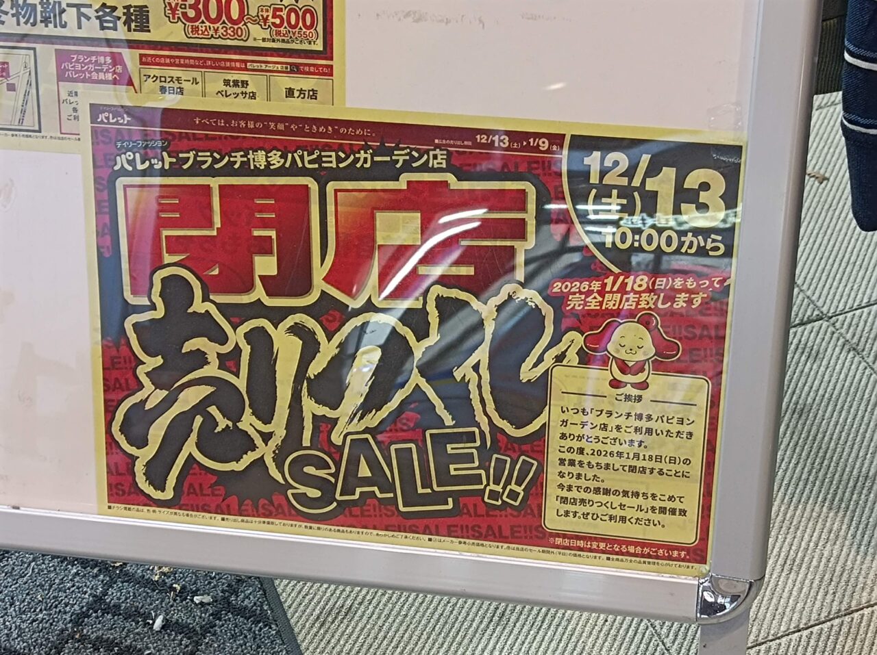 ブランチ博多 パピヨンガーデン、1階にある「パレット ブランチ博多パピヨンガーデン店」が、2026年1月18日(日)に閉店します。
