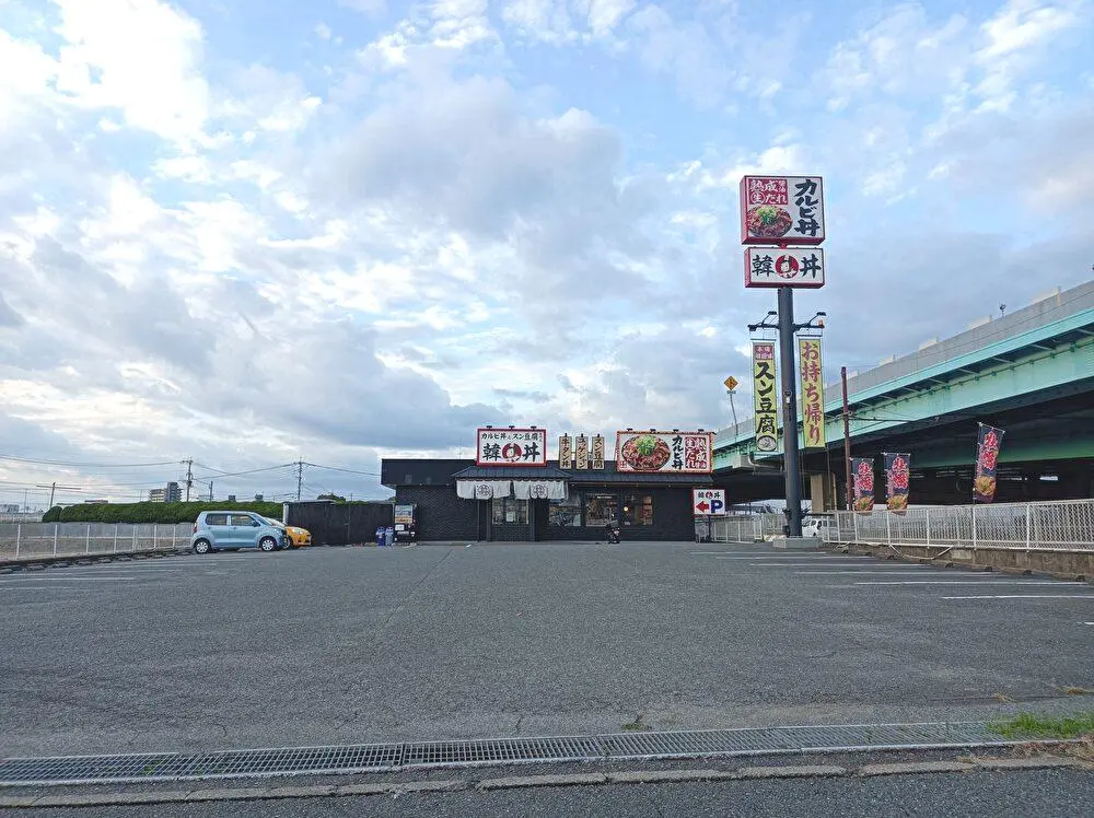 西月隈4丁目、国道3号線沿いにあった「韓丼 福岡空港南店」が、2025年12月30日(火)に閉店しました。