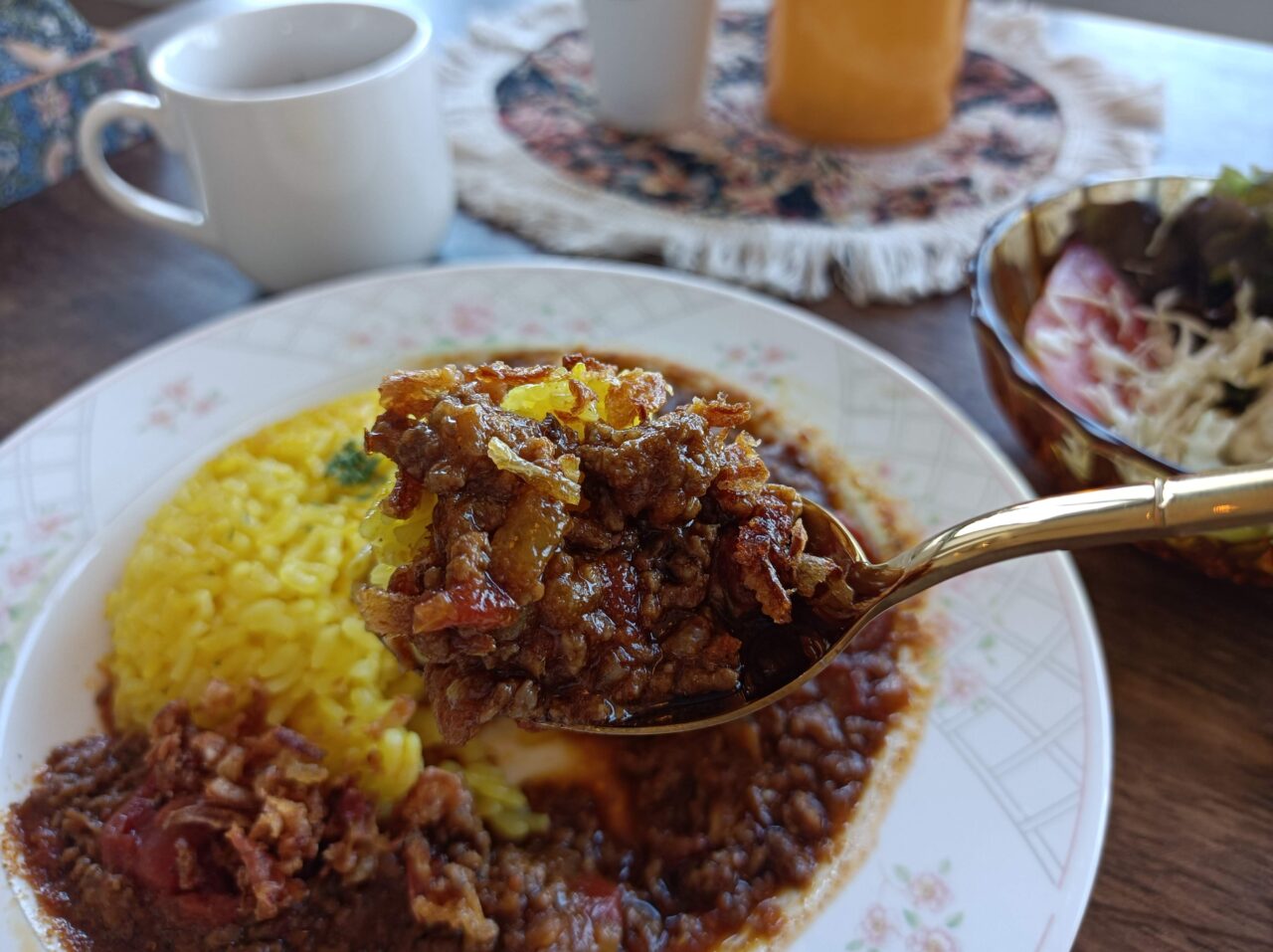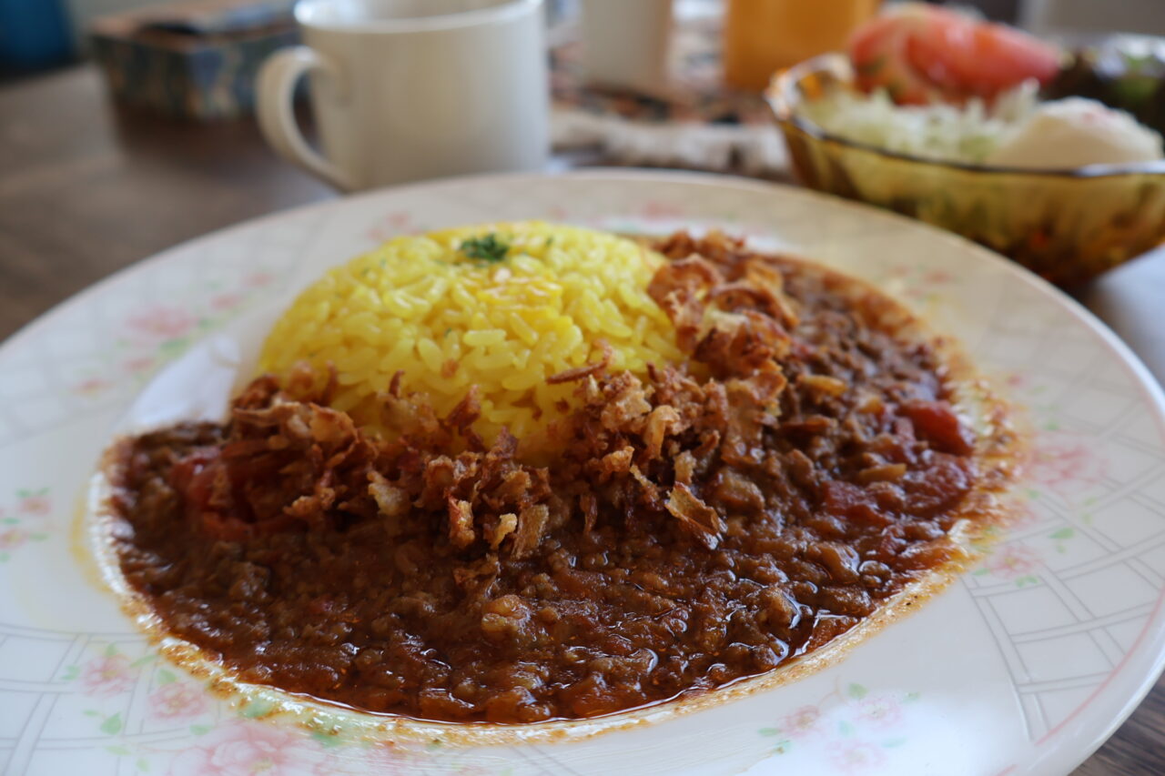 玉ねぎチップがアクセントになっていて、食感も楽しめるだけでなく、あとからスパイスの刺激が心地よく追いかけてきます。辛いものが少し苦手な方でも「おいしい!」と完食してしまうほどのほっこりする美味しさです。