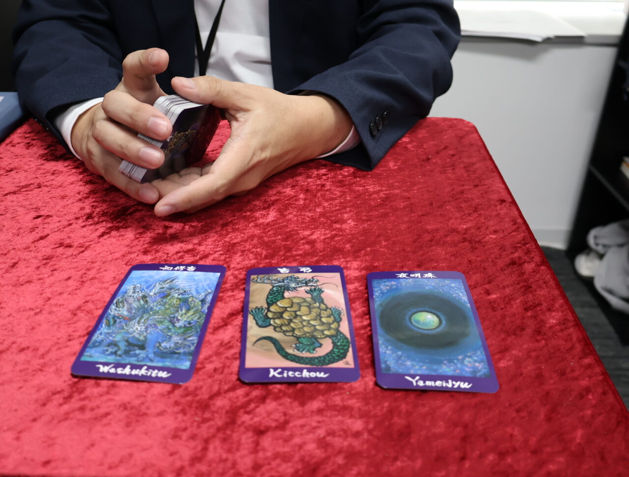 鑑定の中で数多くの前向きな言葉をいただく中、とりわけ印象的だったのが龍神オラクルカード。カード1枚1枚の意味も丁寧に解説してくださるため、結果を受け止めながら、少しずつ気持ちが前向きになれました。