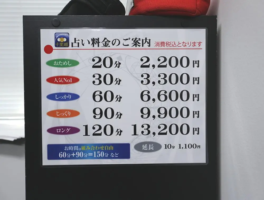 鑑定料は20分 2,200円(税込)からのおためし鑑定から利用できます。指名料もなく、初めての方や学生の方でも安心してご利用いただける価格設定となっています。