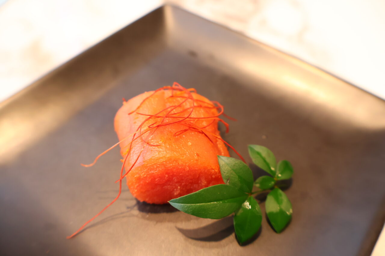 やま中オリジナルの調味液に低温でじっくりと漬け込んだ「からしめんたいこ」は、ひと口運べば、うっとりしてしまうほど上品な味です。後から追いかけてくる柔らかな辛みとと柚子の香りがたまらない逸品です。