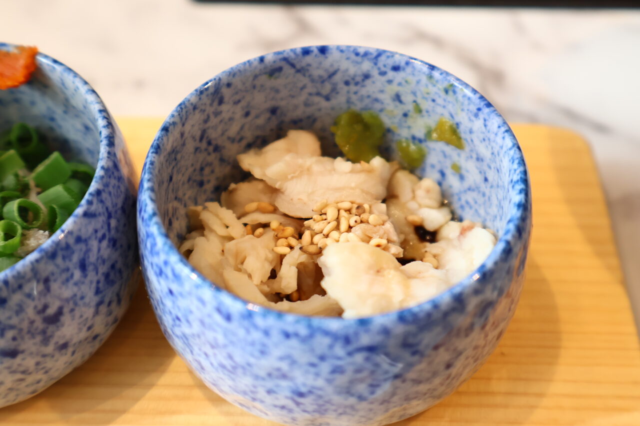 「牛の酢もつ」に使用されているのは、一頭からわずかしか取れない希少な部位。丁寧に処理されているため臭みが一切なく、柔らかな食感と絶妙な酸味が食欲をそそります。お好みで柚子こしょうをつけていただくと、より爽やかな味になって美味しいです。