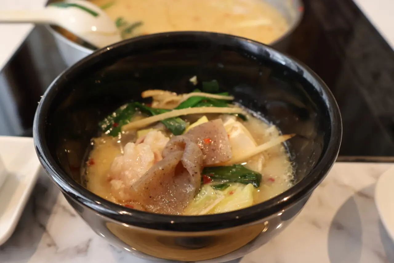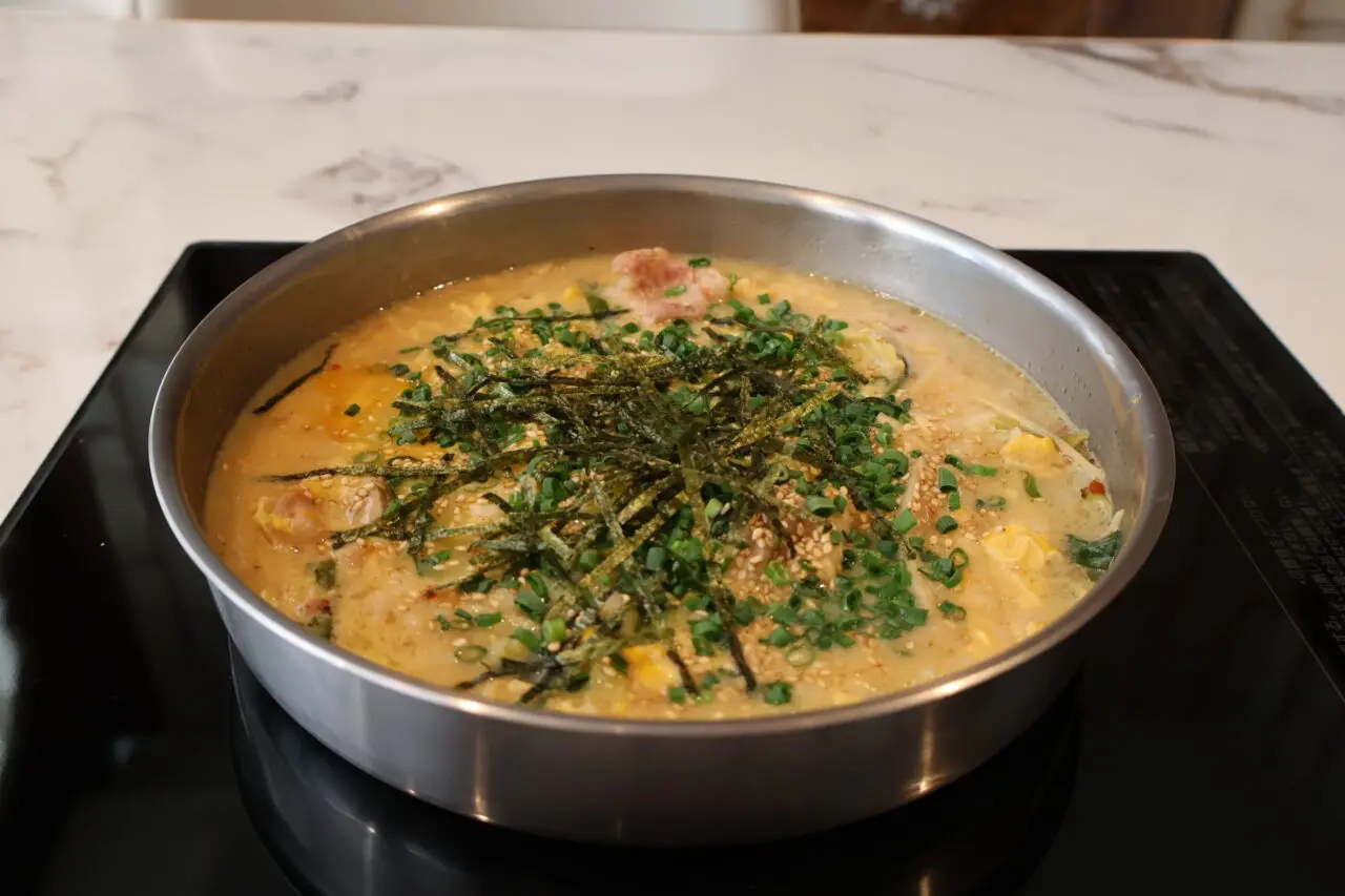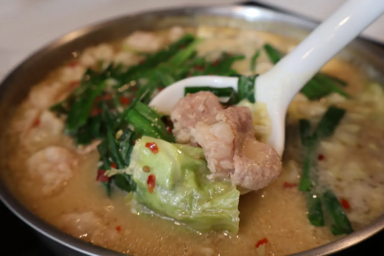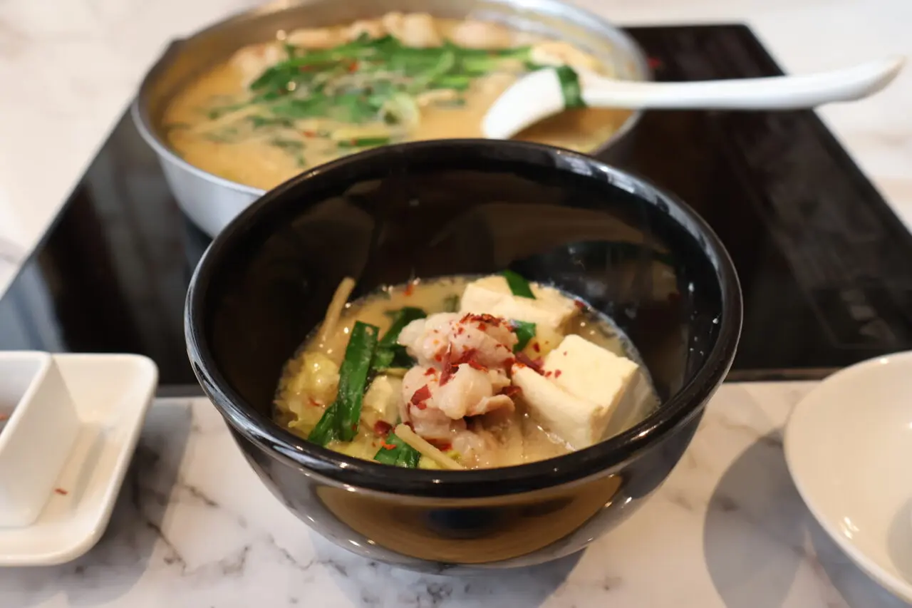 運ばれてきた鍋を前に驚かされるのは、その豊かなボリュームです。一人前でありながら通常の1.5倍ほどの具材が惜しみなく鍋に投入されており、最初から具材に味が馴染んだ、アツアツの状態で提供されます。