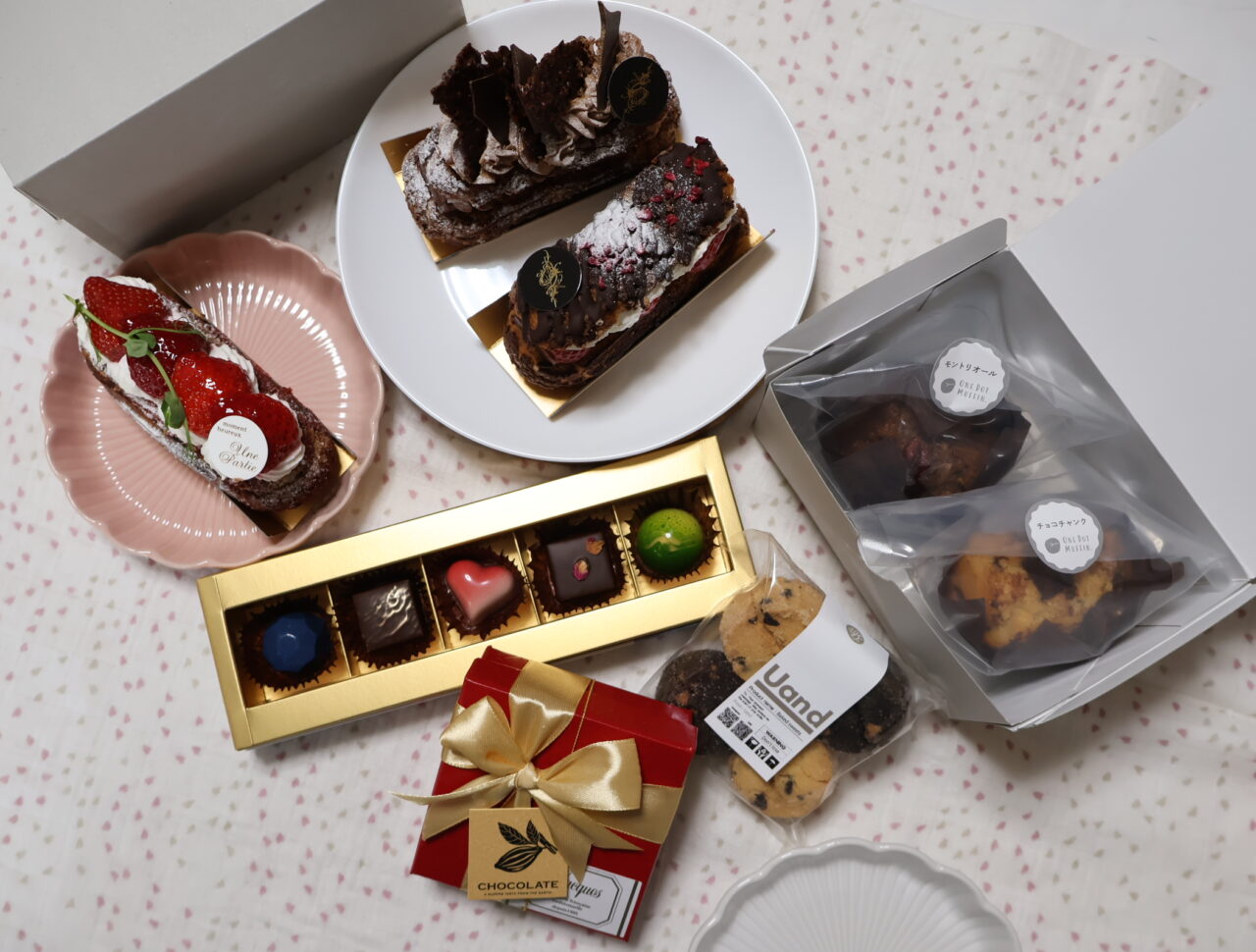 福岡市東区和白丘にある「UnePartie」からは、数種類のエクレアをはじめとする焼き菓子が登場。