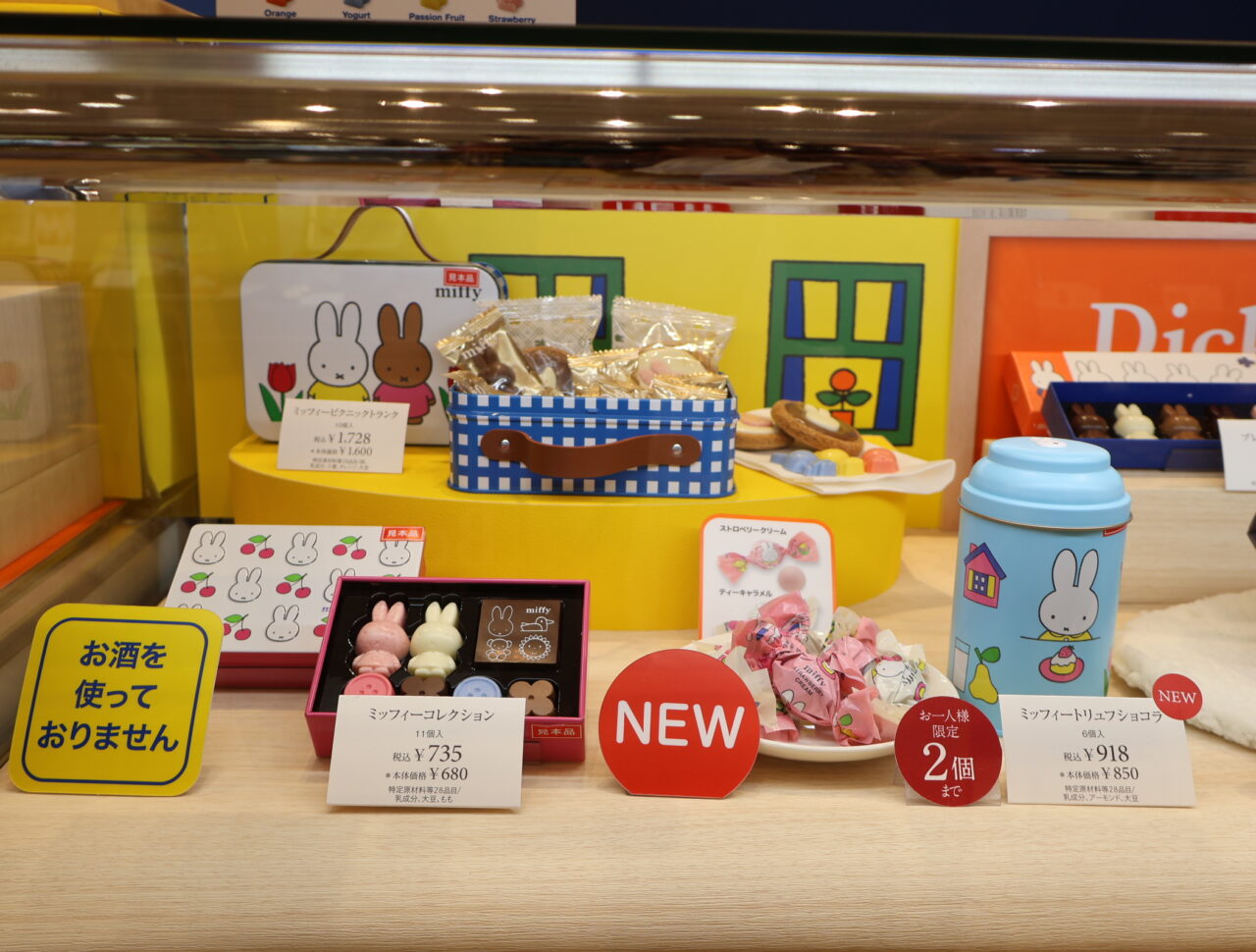 ミッフィー型のチョコレートなどが入った「ミッフィー コレクション」(735円)や「ミッフィー ピクニックトランク」(1,728円)など、ミッフィーの世界が、素敵なチョコレートになっていてかわいい!