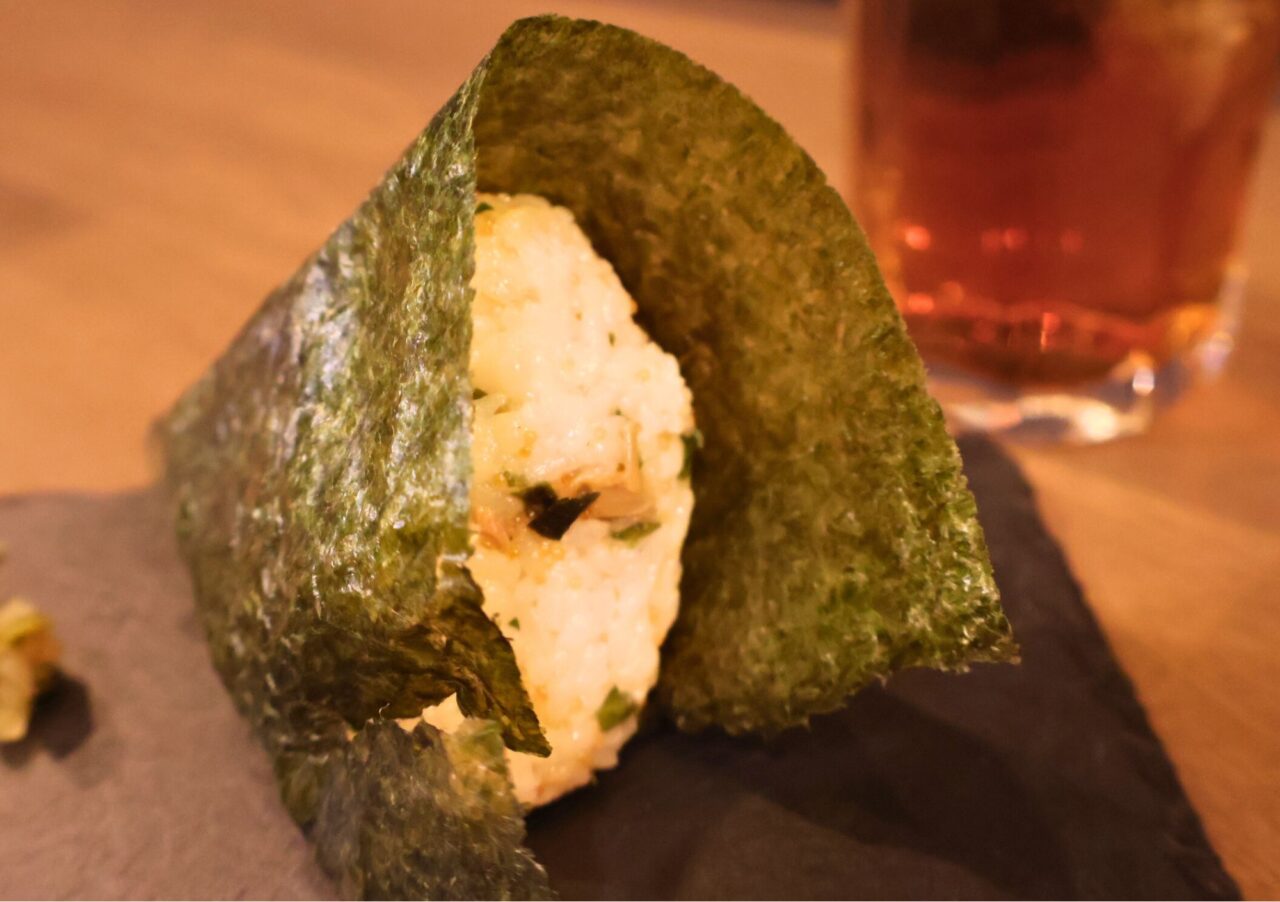 焼鳥や一品料理も美味しいのですが、ご飯系もおすすめです。ネーミングも楽しい「おいPおにぎり」(350円)。とびっこのプチプチ食感に、なめたけの甘み、シーチキンのコクが重なり、ひと口食べれば「おいぴぃ(美味しい)!」と思わず声が出てしまうような、幸せな一品です。
