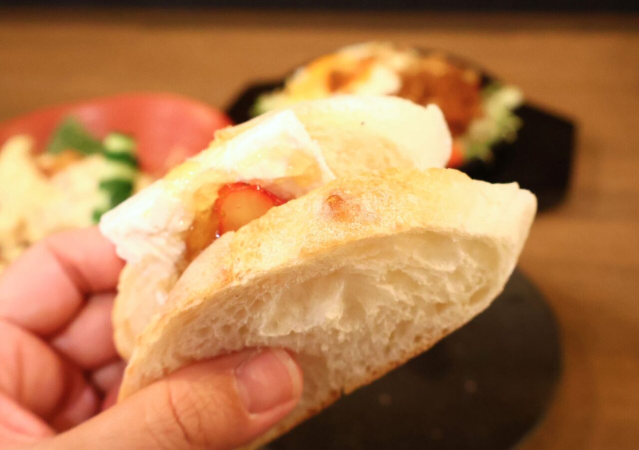 最後にご紹介するのは、締めにも最初の一杯のお供にも食べてほしい「いちごバター」(800円)。試行錯誤を繰り返して完成したお店特製のバターは、レーズンバターを連想させるようなとろける食感がたまりません。あえて冷凍することで旨味を凝縮させたフレッシュないちごとカリカリに焼かれたフランスパン、そして仕上げのはちみつ。冷たいいちごと温かなパン、そしてバターのコクが溶け合う瞬間は…ぜひお店で。ワインとの相性も抜群な、大人のためのデザート・おつまみです。