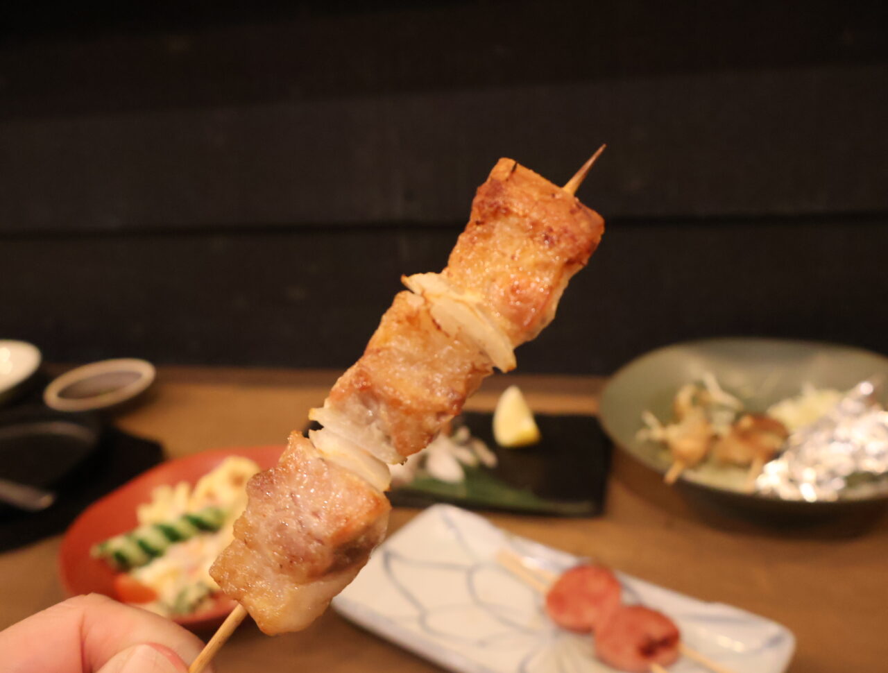 こちらの串料理の主役は、炭火で一気に焼き上げることで閉じ込められたジューシーな旨味。カリッとした食感と、噛むと溢れ出る肉汁が絶品の「豚バラ」や、