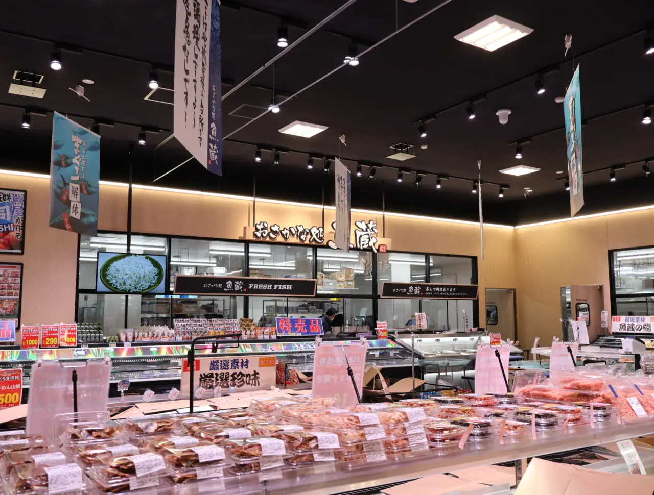精肉店を祖業に持つ強みを生かし、肉・魚・野菜などの生鮮食品の鮮度、品質、品揃えに定評があるフードウェイ。フードウェイ板付店は、「生鮮おどろき市場」の名称で展開。他店以上に生鮮食品に力を入れているそうです。
