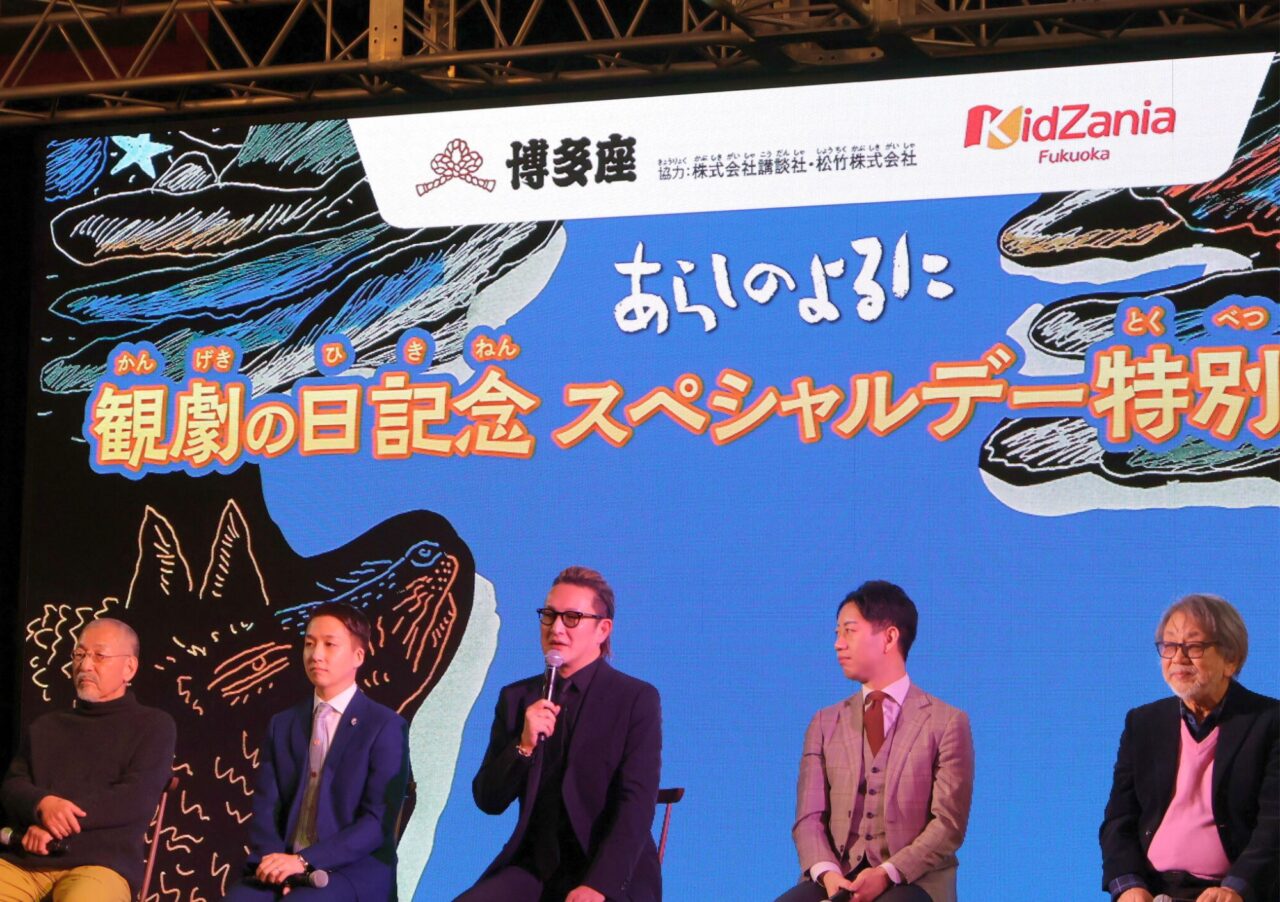 「朗読劇」イベントでは、嵐の夜に出会ったオオカミとヤギの感動的な友情を描き、累計380万部を超えるベストセラーとなった絵本「あらしのよるに」を題材とした期間限定アクティビティとなっています。2026年2月に博多座において、新作歌舞伎『あらしのよるに』(出演:中村獅童氏・中村壱太郎氏)が、二月花形歌舞伎として上演されることを記念し、期間限定で実施されている中、”観劇の日”前夜(2月9日(月))に、「観劇の日記念スペシャルデー」が開催されました。