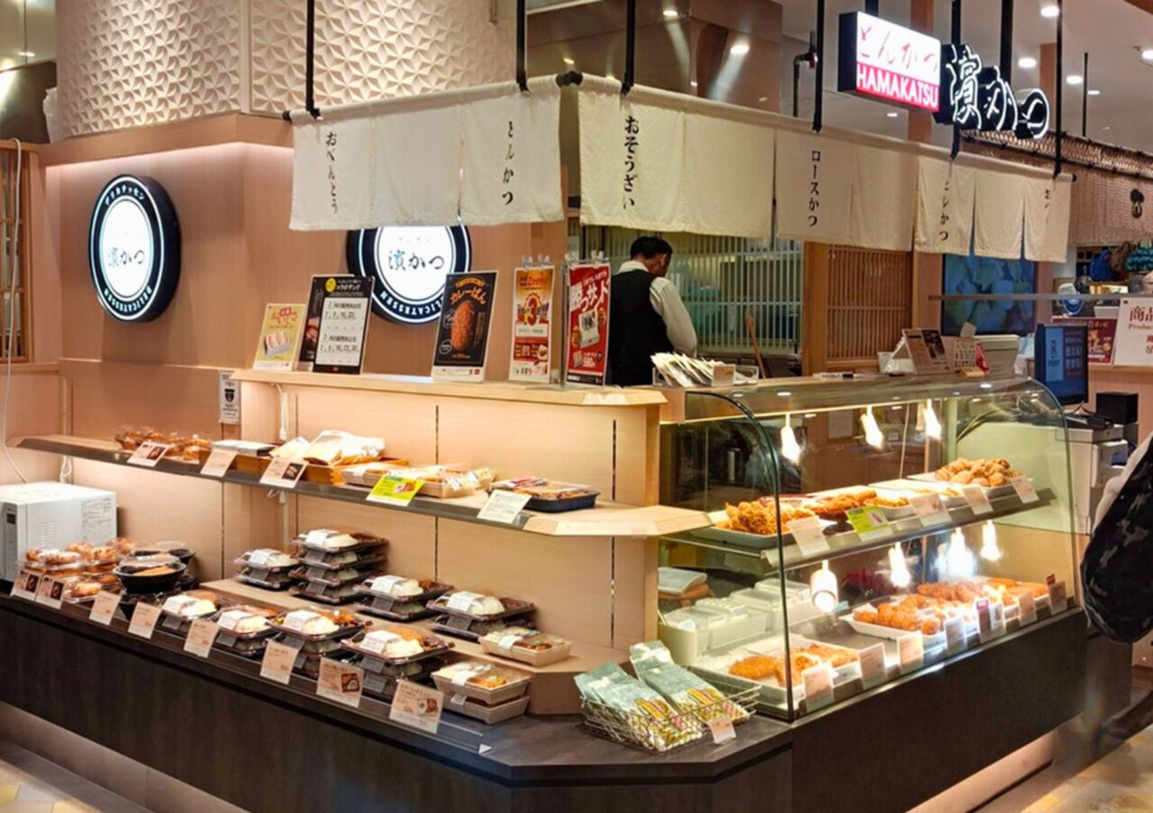 惣菜専門店「とんかつ濵かつ マイング博多店」があるのは、博多エキナカマイング内の食品ゾーン「エキナカキッチン」。スーパーの「博多ステーションフード」の反対側にあり、通勤・通学の途中や買い物ついでにも立ち寄りやすいのが魅力です。