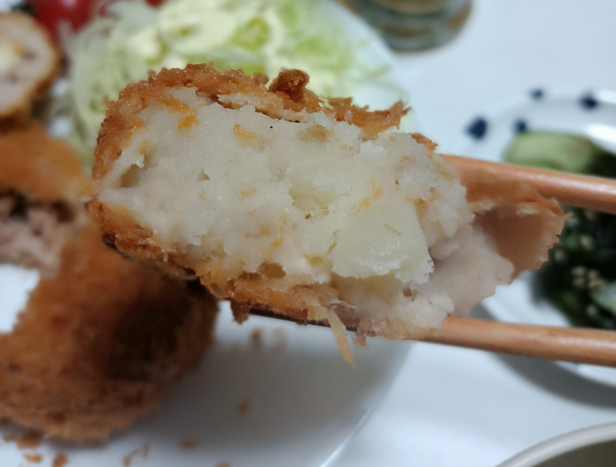 「[北海道産じゃがいも]コロッケ」は、厳選した北海道産じゃがいもを丁寧に潰し、自慢のサクサク衣で包み込んだこの逸品。