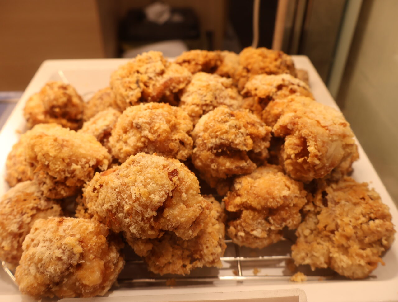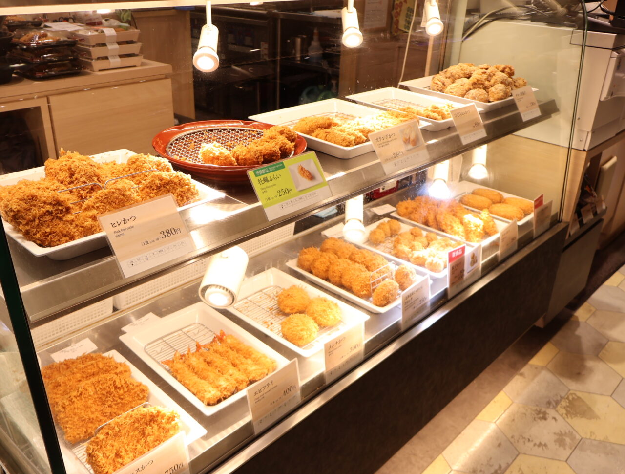 2026年2月中旬、お店へ行ってみると、ショーケースに黄金色の揚げ物たちがずらりと並んでいます。
