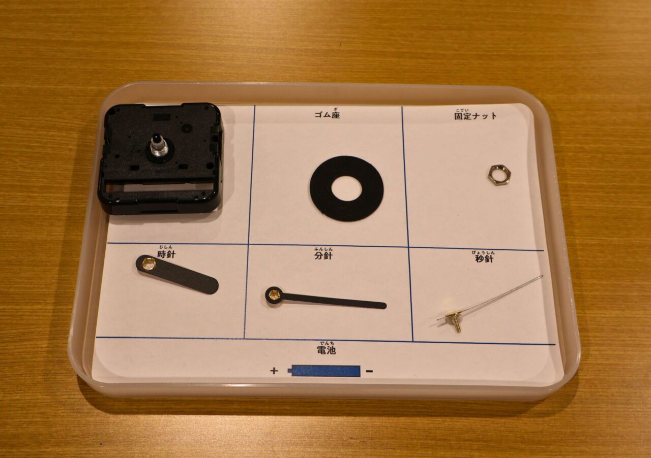 電池を入れた瞬間、「うわっ!動いた!」と歓声が上がりました。世界に一つだけの組み立て時計に喜んでいましたよ。