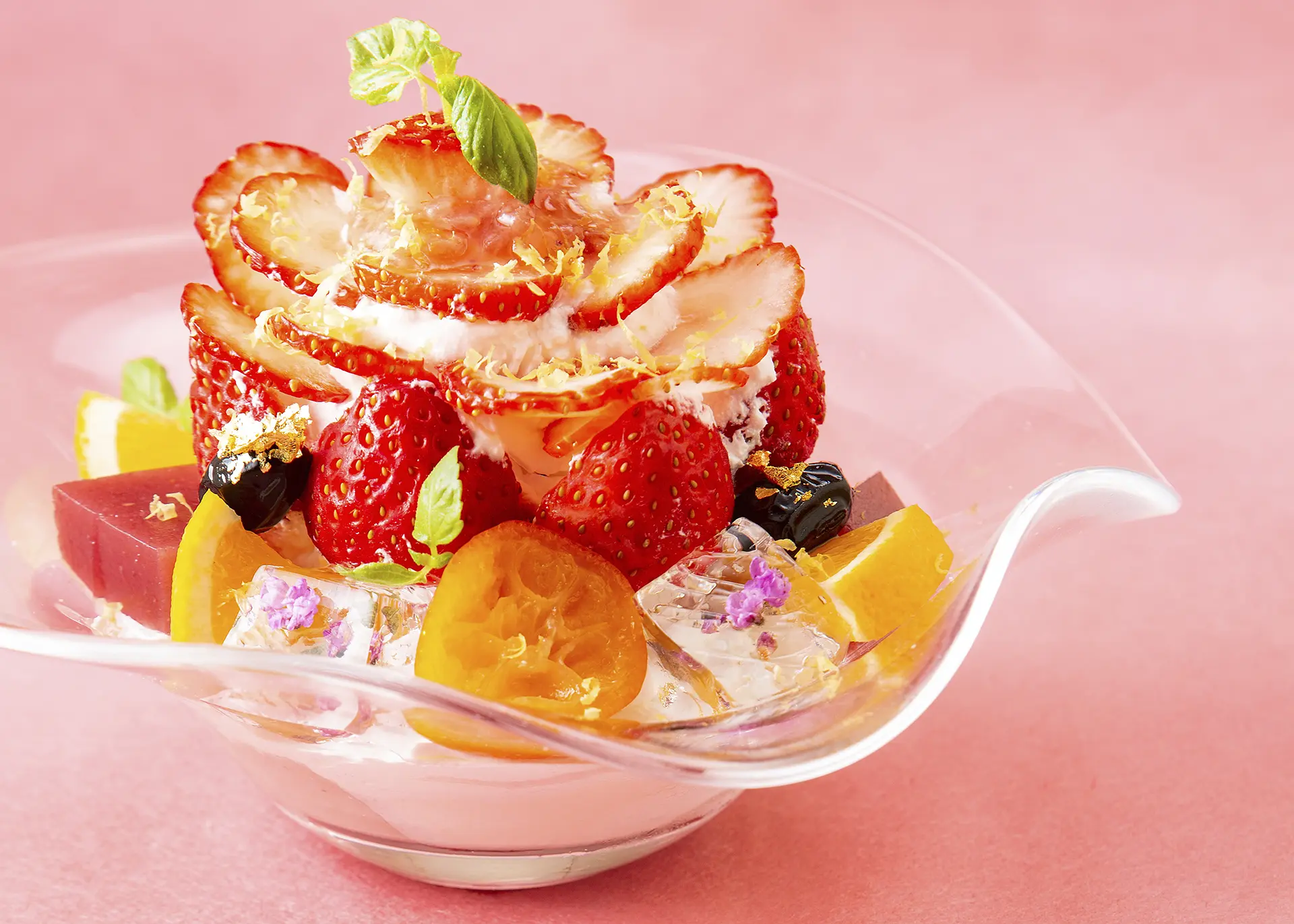 今回の15周年に合わせ、福岡が誇るブランドいちご”あまおう”をふんだんに使用した「あまおう15パフェ」が1,870円(税込)が登場しています。