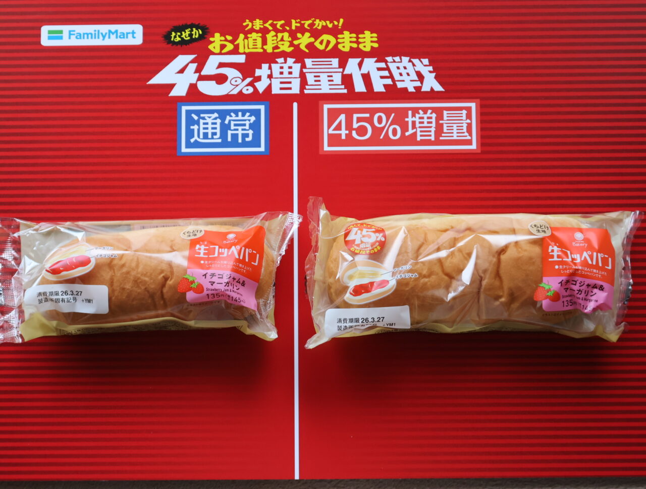 2026年3⽉24⽇(⽕)から「うまくて、ドでかい!お値段そのまま なぜか45%増量作戦」がスタートしています。